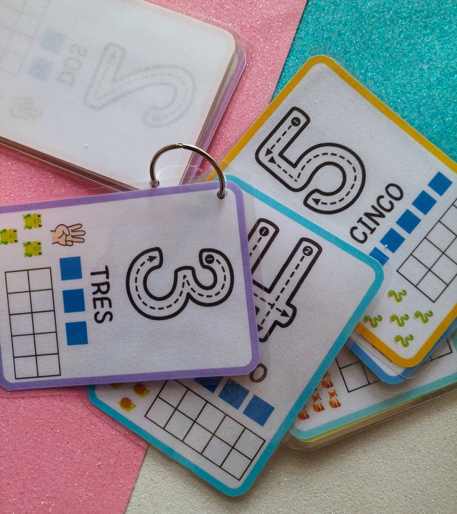 Archivo PDF imprimible con tarjetas para trabajar el trazo, reconocimiento del número y conteo con apoyo visual. Ideal para primeros aprendizajes matemáticos.